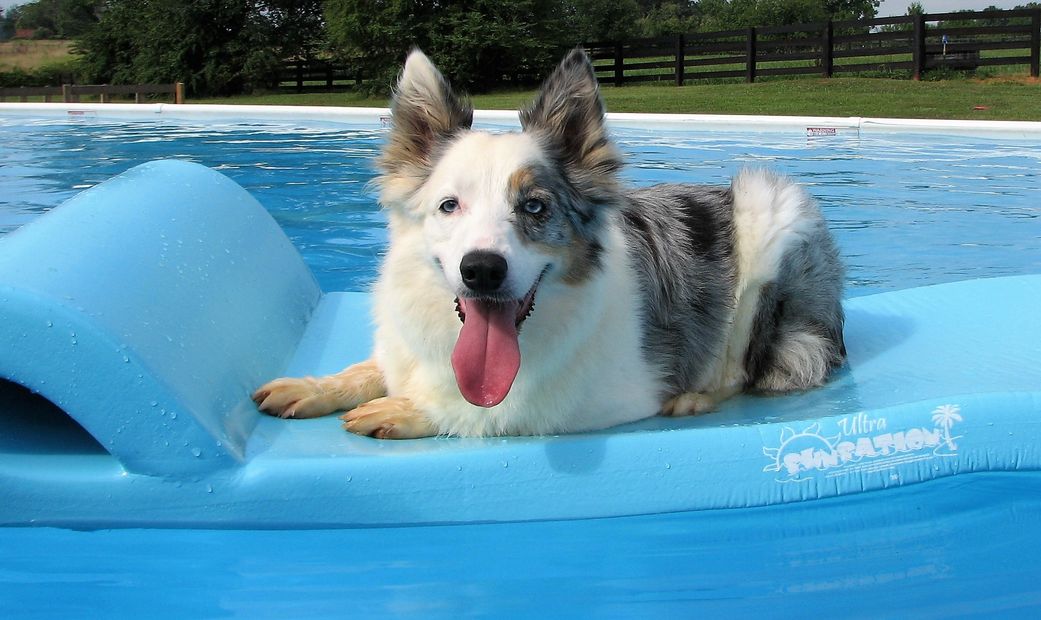 Our dock is dedicated to Moxie, Greg's border collie who loved the pool more than anything else!