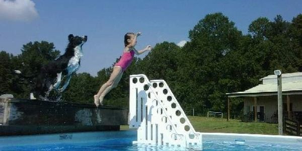 Come enjoy our huge dog pool! It is over 40' by 22' and contains 27,000 gallons of cool salt water! There is a a regulation height and length dock diving dock for training.